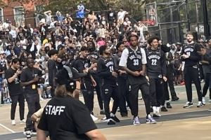 体育资讯9月28日讯 布鲁克林篮网队别出心裁,把球队训练搬到了街边公园的球场。球员们在最原始的室外场地进行训练的同时也与球迷进行互动。