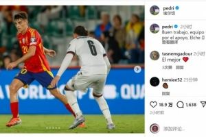 佩德里社媒晒出比赛照片,配文:“干得漂亮,队友们!感谢埃尔切球迷的支持(此役在埃尔切进行)。”