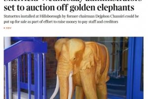 泰晤士:谢周三计划拍卖希尔斯堡球场的标志性金象,以筹集资金